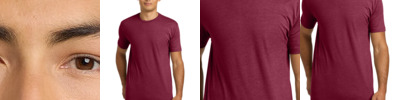 4.3-ounce, 60/40 combed ring spun cotton/poly, 32 singles CVC blend 1x1 rib knit neck Shoulder to shoulder taping Tear-away label Side seamed Fitted