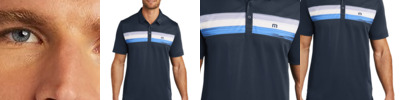 Iconic TravisMathew stripes race across the chest in this ultracomfortable stretch polo. With its wrinkle-resistant, moisture-dispersing fabric, you'll jones to wear it on the course or in a poolside cabana. 5.2-ounce, 96/4 polyester/spandex Self-fabric collar Three-button placket with dyed-to-match buttons Cut-and-sew chest stripes Embroidered TM logo on left chest Open hem sleeves