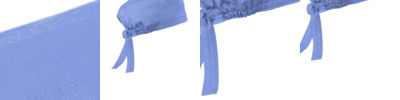 65/35 poly/cotton Mechanical stretch Back tie closure Covered elastic band Wink heat transfer logo at back