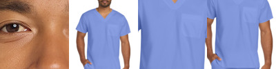 65/35 poly/cotton Mechanical stretch V-neckline Shoulder badge loop Left chest pocket with pen slot Side vents Wink heat transfer logo at left hem Classic fit