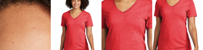 100% polyester wicking knit with color secure(r) technology that helps prevent dye migration * Wicks moisture * Ladies' fit * Tear away label * V-neck collar * Fully reversible * Each layer hemmed separately for embellishment