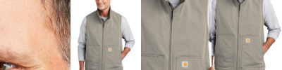 This soft shell vest combines iconic Carhartt looks with unbeatable weather protection. The nylon is 35% lighter than traditional duck but with twice the abrasion resistance. 8.1-ounce, 97/3 nylon/elastane 100% polyester stretch taffeta lining Rain Defender ® durable water repellent Wind Fighter ® technology tames wind Rugged Flex ® technology for ease of movement Reverse coil center front zipper with kissing welt Zip-through cadet collar Secure interior pockets Two lower front pockets Drop tail hem for added coverage Carhartt-strong, triple-stitched main seams Carhartt label sewn on left pocket Relaxed fit