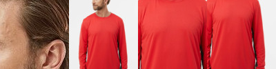 4.3-ounce, 60/40 combed ring spun cotton/poly, 32 singles CVC blend 1x1 rib knit neck Shoulder to shoulder taping Tear-away label Side seamed