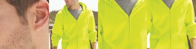 - Double-needle hood, armholes, pockets and waistband
