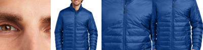 With horizontal baffles, a slight sheen and insulation that simulates down feathers, this is the newest puffy on the horizon. A water-resistant finish helps keep light rain out. 100% polyester shell and lining 90/10 polyester/spandex woven overlay on shoulders Molded center front zipper Elastic cuffs Port Pocket for decoration access Molded zippered hand pockets Insulation method: 10.4-oz. polyfill Water protection method: water-resistant finish on shell, PU coating on lining