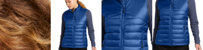 Minimal bulk meets maximized performance in this quilted vest that is built for your cold-weather adventures. Exposed, molded zippers with Eddie Bauer logo pulls. Zippered hand pockets. Contrast Eddie Bauer heat transfer logo on right hem. Made of 100% polyester shell and lining. 3-ounce, 100% polyester fill. Durable water-repellent (DWR) finish with a PU coating.