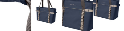With handles long enough to go comfortably over your shoulder, this soft tote cooler is always ready for any outdoor adventure. Designed for maximum ice retention, your food and drink stay cool and easily accessible. 300D ripstop polyester 1-inch thick, high-density, closed-cell insulating foam Heavyweight, leak-resistant PEVA lining Zippered main compartment Front zippered compartment Contrast Eddie Bauer logo printed on front panel Front daisy chain attachment system Never-lost bottle opener Webbing handles Dimensions: 12.5'h x 20'w (top) x 16.5'w (bottom) x 4.5'd (top) x 8'd (bottom); Approx. 1,220.5 cu. in. Capacity: 1,159.5 cu. in./19 L Weight: 2.2 lbs./0.98 kg Note: Bags not intended for use by children 12 and under.