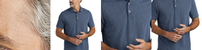 Tap into an unprecedented look with this wrinkle-resistant, quick-drying polo that features 4-way stretch and a large-scale chest stripe overlaid with texture. 4.4-ounce, 58/42 cotton/polyester Easy wash and wear Self-fabric collar Three-button placket with dyed-to-match buttons Embroidered TM logo on left chest Open hem sleeves Side vents