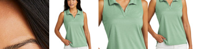 Perfect for golf, tennis or brunch on the patio, this feminine sleeveless polo performs with wrinkle resistance, 4-way stretch and quick-drying technology. 4.1-ounce, 100% polyester Easy wash and wear Self-fabric collar V-neckline Side vents TM logo woven label at left hem Drop tail hem