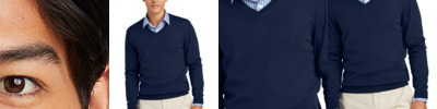 Quality and craftsmanship meet timeless design in a V-neck sweater built for layering. Made from extra-fine Merino wool, this machine washable sweater feels as luxurious as it looks, and it makes a versatile addition to any outfit. 100% extra-fine Merino wool Machine washable for easy care Fully fashioned throughout 1x1 rib V-neck, cuffs and hem Interior collar stripe detail Back shoulder seaming