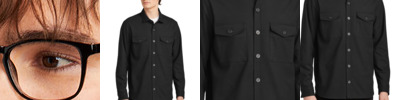 Boardroom-bound or loosely layered, this versatile twill overshirt combines the clean design of a blazer with just the right amount of stretch. The result fits in at work, at home and anywhere in-between. Fabric+Weight 7.2-ounce, 69/29/2 poly/rayon/spandex stretch twill Features+Benefits Open collar Faux horn-rimmed buttons Double chest pockets with button flaps Adjustable rounded barrel cuffs Side seam pockets Shirt tail hem