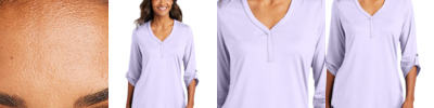 A polished look is easily achieved in this elevated style that combines professionalism with snag- and odor-resistance, plus moisture wicking performance. 5.6-ounce, 94/6 poly/spandex jersey Snag-resistant Stretch Moisture-wicking Odor-resistant Easy Care Self-fabric collar with collar stand Single-button keyhole neck Curved drop tail hem Tag-free label