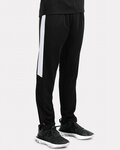 * 11 ounce per linear yard, 100% polyester stretch double knit with stain release * Woven label * Branded silicone knitted elastic waistband with tunnel belt loops * Two-snap closure * Zipper fly * Two set-in double welt back pockets with button closure * Reinforced knees * Elastic cuffs