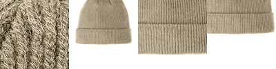 100% acrylic Six darts at crown for shaping Dyed-to-match pom Adjustable cuff