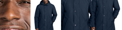 Designed with traditional quilt lines, this insulated full-zip is built for warmth and weather-resistant performance. Features include full-length interior storm flap with chin guard, exposed, molded zippers with Eddie Bauer logo pulls, elastic cuffs, zippered hand pockets and a slight drop tail hem. Includes a decoration access pocket. Packs into zippered left hand pocket. Longer length with a double zipper. Contrast Eddie Bauer heat transfer logo on right hem. Made of 100% polyester ripstop and 5.4-ounce, 100% polyester blown fill. PU coating on back of shell. Durable water-repellent (DWR) finish.