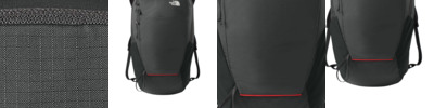210D 100% recycled nylon ripstop with non-PFC durable water-repellent (DWR) finish 600D 100% recycled polyester bottom panel NextVent back panel and shoulder straps offer padding, multidirectional ventilation and breathability Large main compartment with laptop sleeve Exterior stash pocket Two-point trekking pole attachments Two water bottle pockets Hydration-tube-and-bladder compatible (tube and bladder not included) Concealed red rain cover deploys easily Contrast embroidered The North Face logo on front Contrast heat transfer The North Face logo on rain cover Average weight: 1 lb. 5 oz. (600 g) Volume: 1098 in3 (18 liters) Laptop/hydration sleeve: 13.8'h x 10.8'w; fits most 15' laptops Dimensions: 19.3'h x 11'w x 5.9'd Note: Bags not intended for use by children 12 and under.