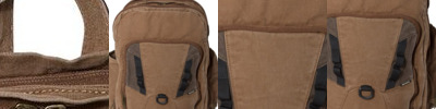 - Metal clip and d-ring closure on flap