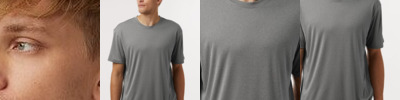 - 4.5 oz./yd² (US), 7.5 oz./L yd (CA),100% polyester interlock jersey heather melange with Pro-Lock technology
