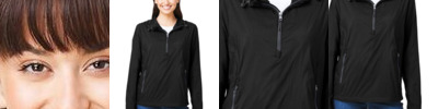 1.5 oz./yd², 100% polyester taffeta with water-resistant finish Encased elastic at hood opening for superior weather protection Reflective tape details at front and back shoulders and placket Two-snap closure at placket with dyed-to-match plastic snaps Packable into self back pocket with hook and loop closure Shockcord at lower hem for added weather protection
