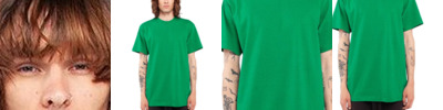 6 oz./yd² 100% USA cotton, 18 singles Heather Grey is 90/10 USA cotton/polyester Charcoal Grey and Safety Green are 50/50 USA cotton/polyester Shoulder-to-shoulder neck tape Classic fit Forward-thrusted shoulder seam for comfortable neck fit 1" double-needle stitched sleeve and bottom hems 7/8" Seamless non-topstitched collar Quarter-turned to eliminate center crease Tear away label
