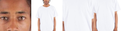 6 oz./yd²., 100% USA cotton, 18 singles Heather Grey is 90/10 USA cotton/polyester Forward-thrusted shoulder seam for comfortable neck fit 7/8" Seamless non-topstitched collar Shoulder-to-shoulder neck tape Scalloped bottom hem 1" double-needle stitched sleeve and bottom hems Drop tail curved back hemline Quarter-turned to eliminate center crease Heat transfer label