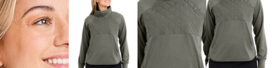 5.9 oz./yd²., 90/10 polyester/spandex 75/25 polyester/ spandex sleeves Diamond quilted material Relaxed pullover fit TK08 Repreve Asymmetrical snap up collar Side-slit pockets