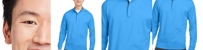 7.8 oz./yd²., 75/25 polyester/spandex, heathered Durable Performance with minimalist design for on and off the course Full Stretch Hidden front semi-auto-lock zipper with accent color collar stand