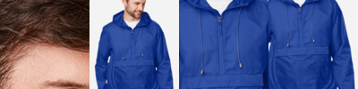 2.8 oz./yd² (US), 4.7 oz./L yd (CA), abrasion-resistant 100% nylon taslan shell with polyurethane coating for enhanced wind- and water-resistance 3 oz./yd² (US), 5 oz./L yd (CA), 100% polyester dyed-to-match tricot big hole mesh lining in body 1.7 oz./yd² (US), 2.8 oz./L yd (CA), 100% polyester taffeta lining in sleeves Roll-away three-piece hood with rain bill Black taping adds contrast to back and sleeves EZEM zipper in back lining for easy decoration access Center front/lower pockets with molded plastic zipper with garage