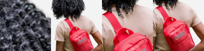 - Cotton webbing, adjustable back straps and top carry handle