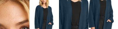 With a distinctive half shaker stitch, this textured sweater has an effortlessly chic look. It complements any contemporary outfit with an exquisite layer of warmth and style. Fabric 89/11 cotton/nylon Features+Benefits Drop shoulders Ribbed collar and lapel Open front ribbed placket Integrated front pockets Boxier fit Hits at high hip