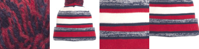 A fan fave: a classic beanie with three stripes and a two-tone pom.