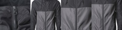 - Jersey lined hood with sewn eyelets