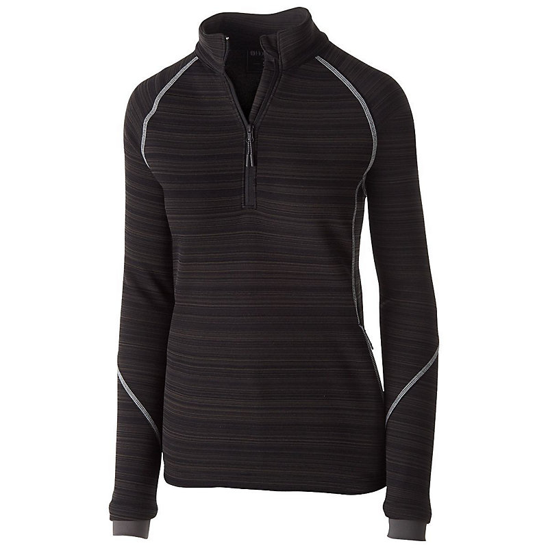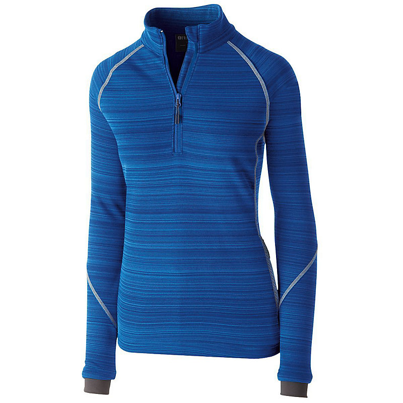 Dry-Excel™ bonded polyester is a scuba bonded fabric featuring a tonal striation with DWR finish for weather-resistance and microfleece lining for maximum warmth * Storm Dfend™ Technology features durable water-resistant finish keeps you dry while knit softshell breathes to keep you comfortable * Poly/spandex storm cuffs for added weather protection and comfort * Ladies' fit * Woven label * Half-zip pullover style with reflective zipper pull and matte tips * Dry-Excel™ bonded poly zipper garage and storm flap * Contrast color stitching * Raglan sleeves for maximum mobility * Front zippered pockets * Open bottom