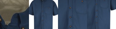 - Two-piece, lined, banded, topstitched, button-down with contrasting inside collar band