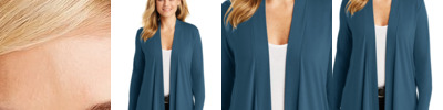 Created from super soft jersey knit, this cardigan fights indoor chill and instantly upgrades any corporate look. 4.4-ounce, 62/33/5 poly/rayon/spandex jersey knit Open front Shawl collar