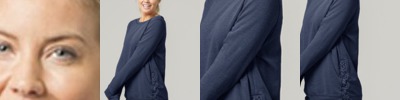 - Ribbed neckband, sleeve cuffs, and bottom band