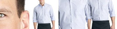 Craftsman styling creates a signature look in this apron that¿s perfect for bistros, pubs, cooking classes and more. The wrinkle-resistant fabric has a denim-like look which blends performance with style to make a sophisticated statement. 7-ounce, 60/40 cotton/poly yarn-dyed twill Adjustable contrast webbing neck strap with antique-finish metal slider Patch pocket, pen pocket Self-fabric waist ties Contrast stitch details Measures: 25'w x 34.5'l