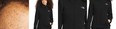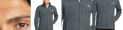 A soft, heathered tone adds casual appeal to the heavyweight, sweater-knit fleece jacket that's warm, yet breathable, on the trails. 300 g/m2 100% polyester sweater knit with brushed fleece interior Constructed from 53% recycled polyester sweater knit Sweater-knit fleece with a brushed interior for comfort Reverse-coil center front zipper Open hand pockets Contrast embroidered The North Face logo on left chest Stylish stitching details on lower sleeves **