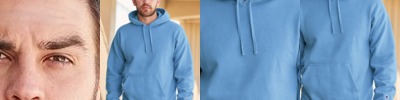 - Swatches indicate body color/sleeve color/drawcord color