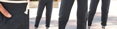 - Spandex in waistband and cuffs