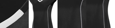 - 6.8 oz./yd², 88/12 Polyester/spandex (body)