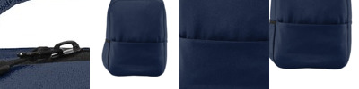 600D poly canvas (solid); 600D heather poly (heather) Main compartment with padded laptop panel Interior organization pockets Front zippered pocket Exterior side pocket Padded air mesh shoulder straps Luggage trolley pass through on back Laptop sleeve dimensions: 11.5'h x 12'w x 1'd; fits most 15' laptops Dimensions: 17.75'h x 12.25'w x 5.5'd; Approx. 1,196 cubic inches Note: Bags not intended for use by children 12 and under.